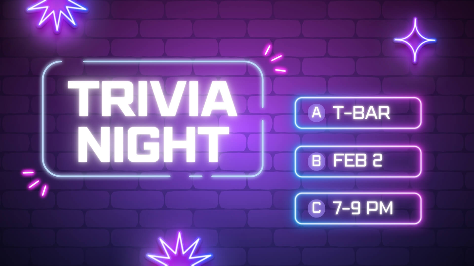 Grab your team and come to the T-Bar Pub to break a mental sweat in this trivia pursuit of knowledge. Answer this week’s uniquely-themed questions for your chance to win awesome prizes and ultimate bragging rights!