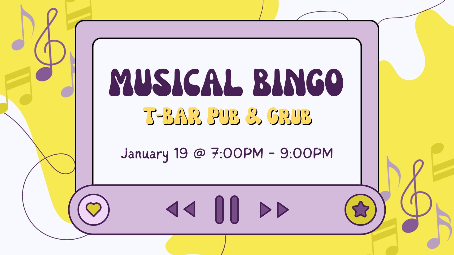 T-Bar Pub & Grub PO Box 610, Pincher Creek, AB, CanadaJam out and test your musical knowledge at Musical Bingo Night at the T-Bar Pub! Every Musical Bingo Night will feature a theme or era of music, so join us every other Sunday to test your tuned ears. The fun begins at 7 PM.