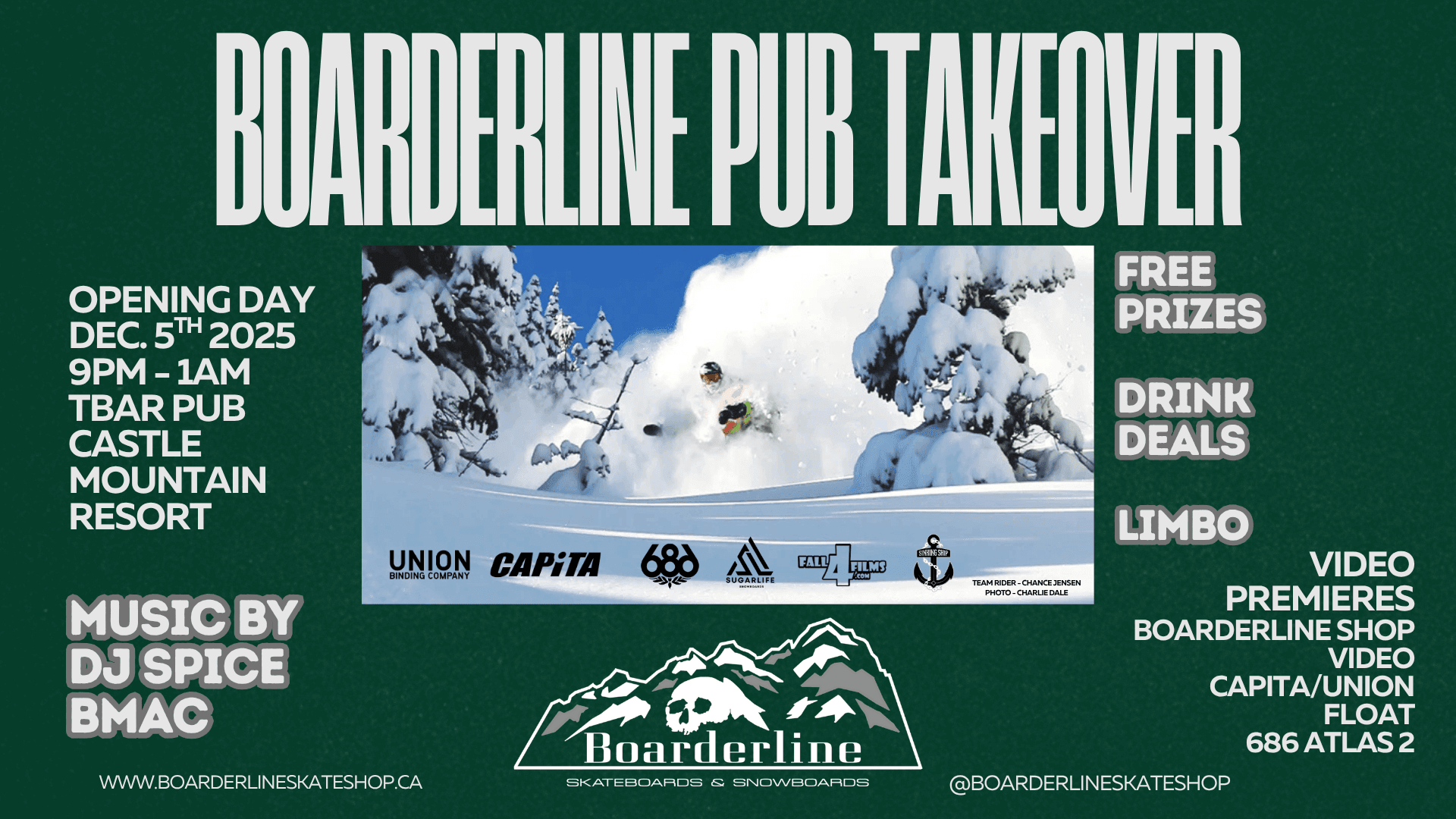 Castle Mountain Resort AB, CanadaJoin the team from Boarderline Skate & Snow, in Lethbridge, as they take over the T-Bar Pub on Friday night, December 5. There will be multiple snowboard themed movies being shown starting at 9 PM, a toast to ULLR at 9:45 PM, free prizes, and DJ BMac Beats and DJ Spicy will take is into […]