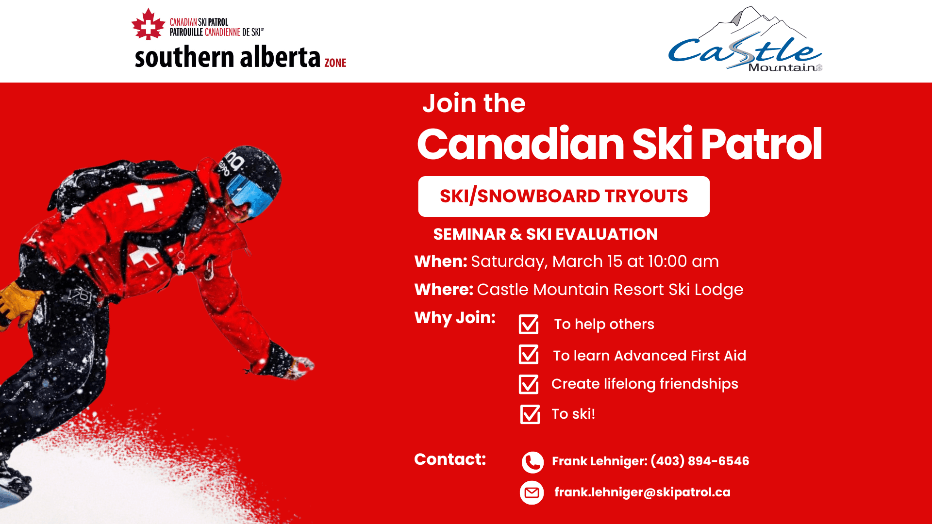 Castle Mountain Resort AB, CanadaEver dreamed of becoming one of our hillside heroes, or curious to see if you have what it takes to be part of the Canadian Ski Patrol? Come on down to Castle Mountain Resort on March 15, 2025 for a seminar on all things patrol, and for a quick evaluation of your skills on the […]