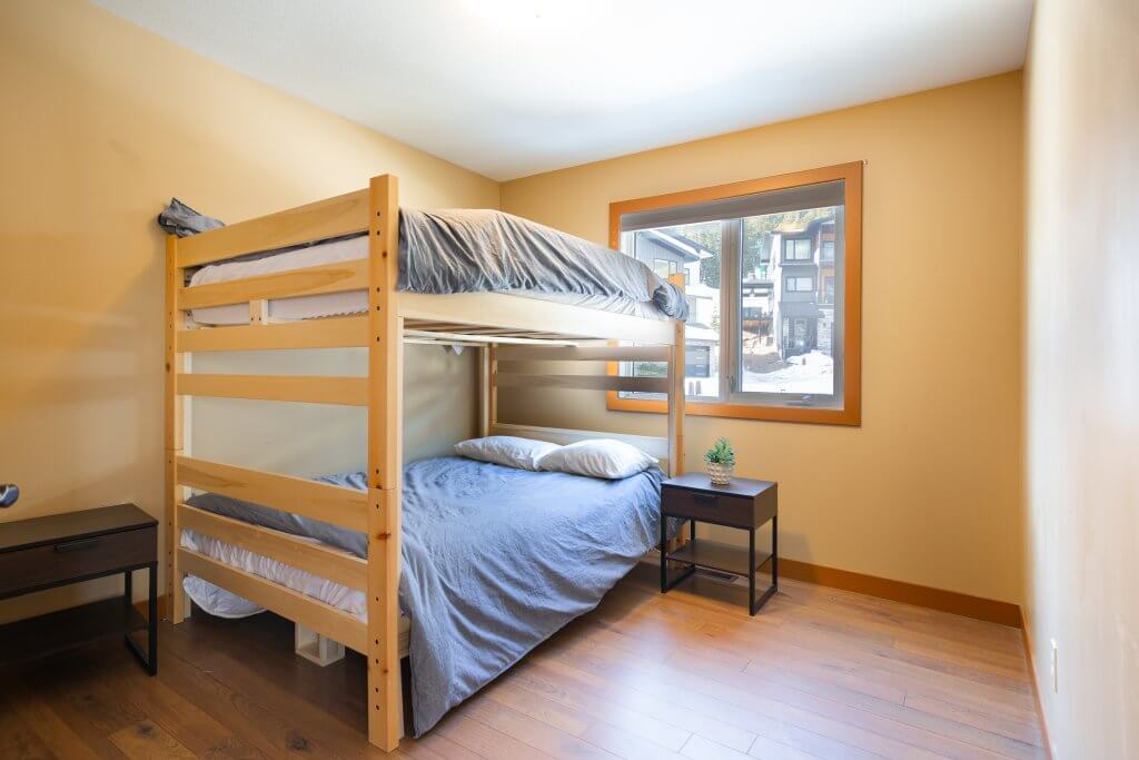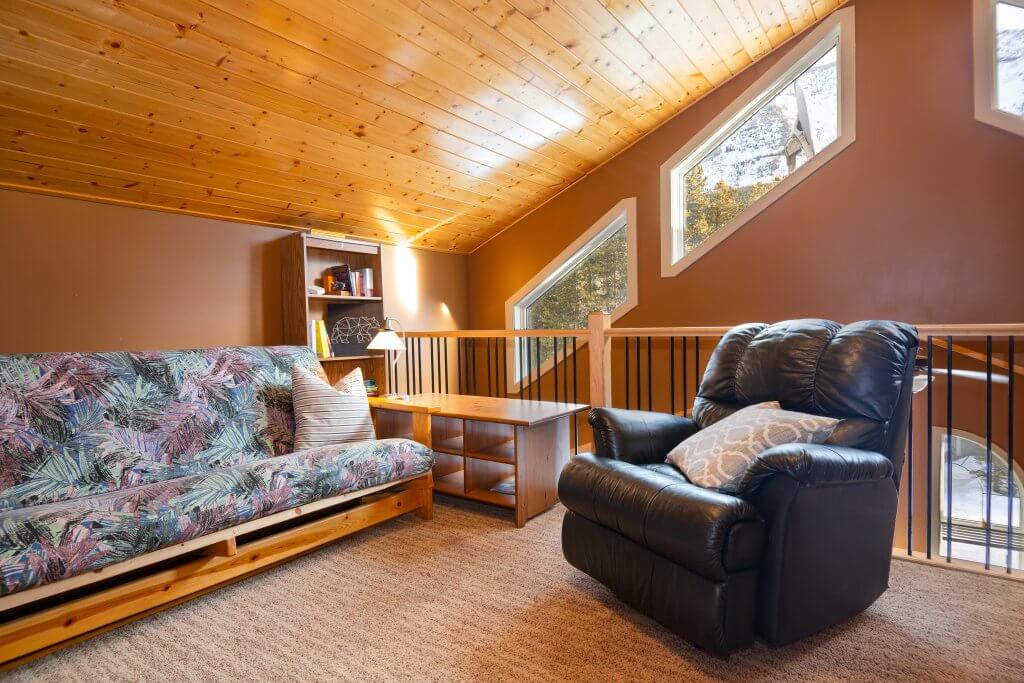 The Chutes is a spacious cabin conveniently located near the slopes at Castle Mountain Resort, ideal for large groups and families. Featuring four bedrooms and a loft with a total of seven beds, it comfortably sleeps up to 12 people. After a day of adventure, guests can unwind in the hot tub or enjoy entertainment on the smart TV. The Chutes combines ample sleeping arrangements with modern amenities, making it a perfect retreat for those looking to relax and reconnect amidst the scenic mountain backdrop.
