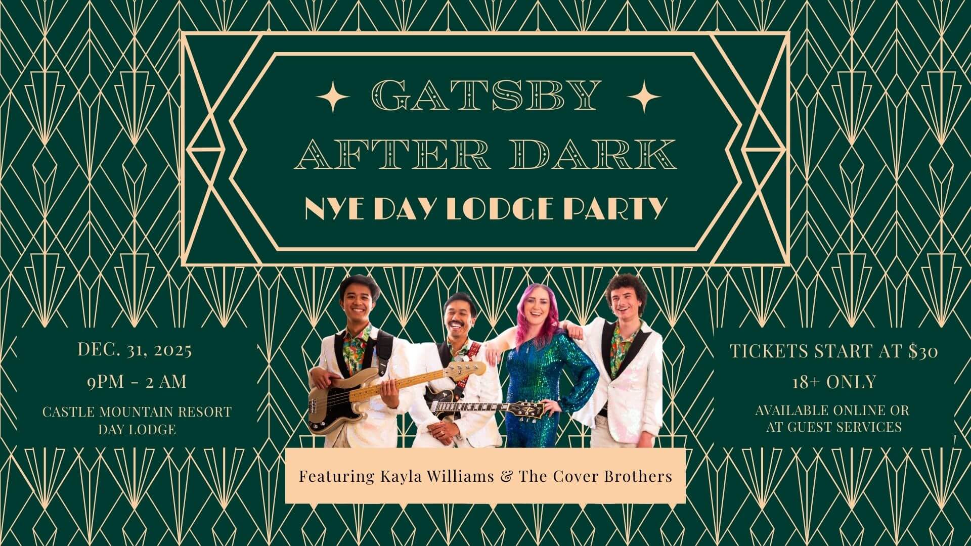 Castle Mountain Resort AB, CanadaOur New Year's Eve Day Lodge Party is back! This year's party is sure to rock as we end one year and ring in another - 2026! The theme of this year's event is "Gatsby After Dark". The novel turns 100 this year so we're bringing back the roaring 20's (1920's), with its glamorous dresses […]