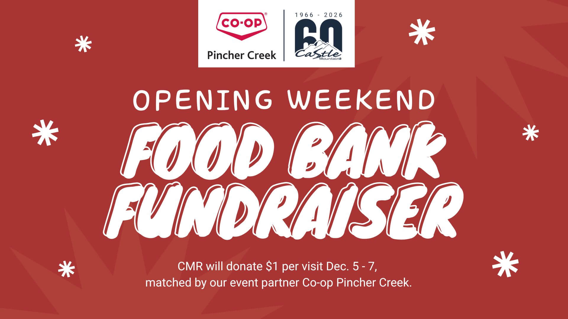 Castle Mountain Resort AB, CanadaSki or ride with us opening weekend and help us give back to those less fortunate, in our area. For every visit over our opening weekend, December 5 - 7, Castle Mountain Resort will donate $1 to local food banks within our area, to a maximum of $2500. Our friends at Co-op Pincher Creek have […]