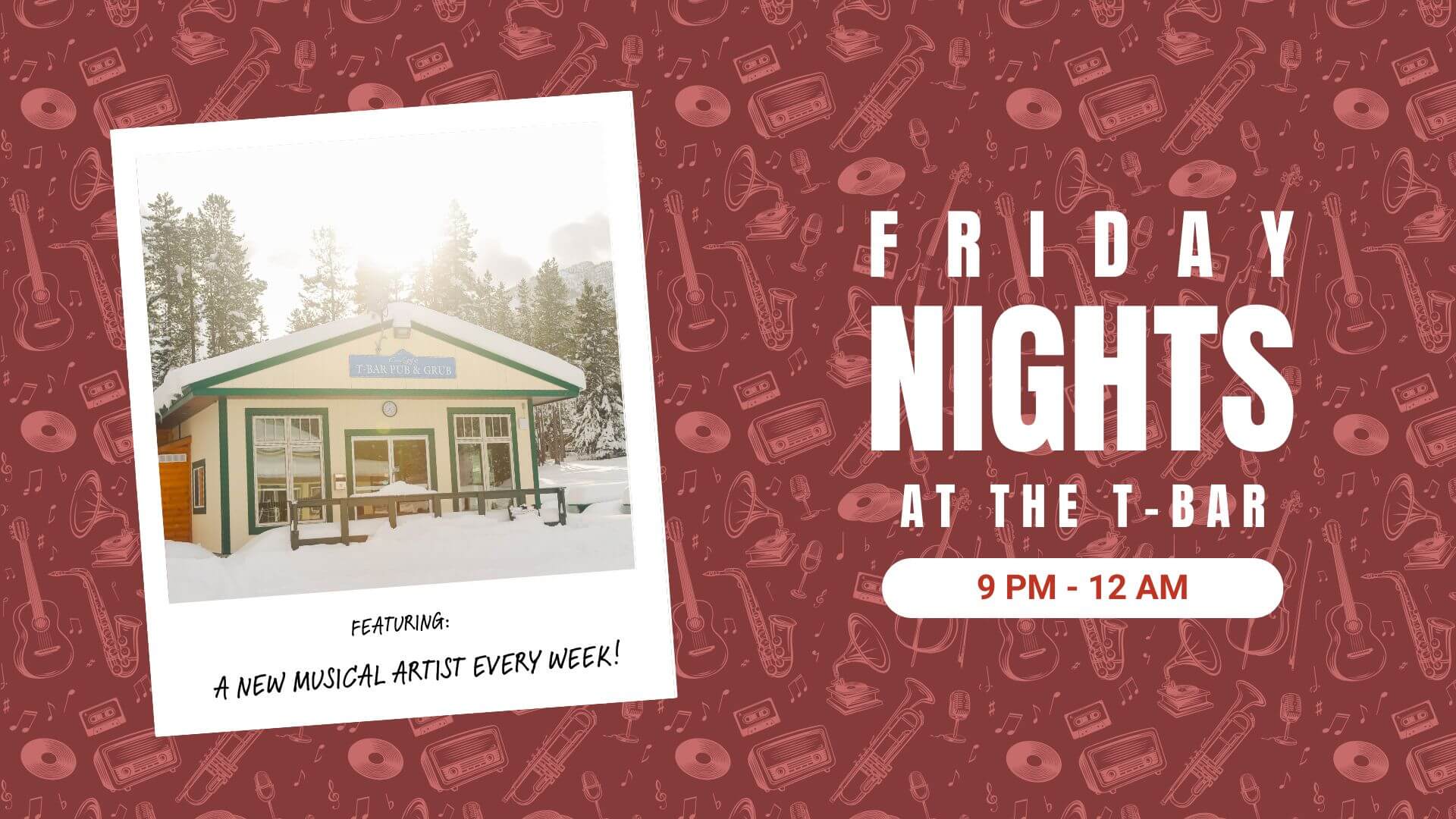 T-Bar Pub & Grub PO Box 610, Pincher Creek, AB, CanadaOur Friday night live music series is back! Join us every Friday evening, in the T-Bar Pub, for a new musical artist. They'll hit the stage each night starting at 9 PM. Also, Red Truck Draft will be on special ALL DAY!